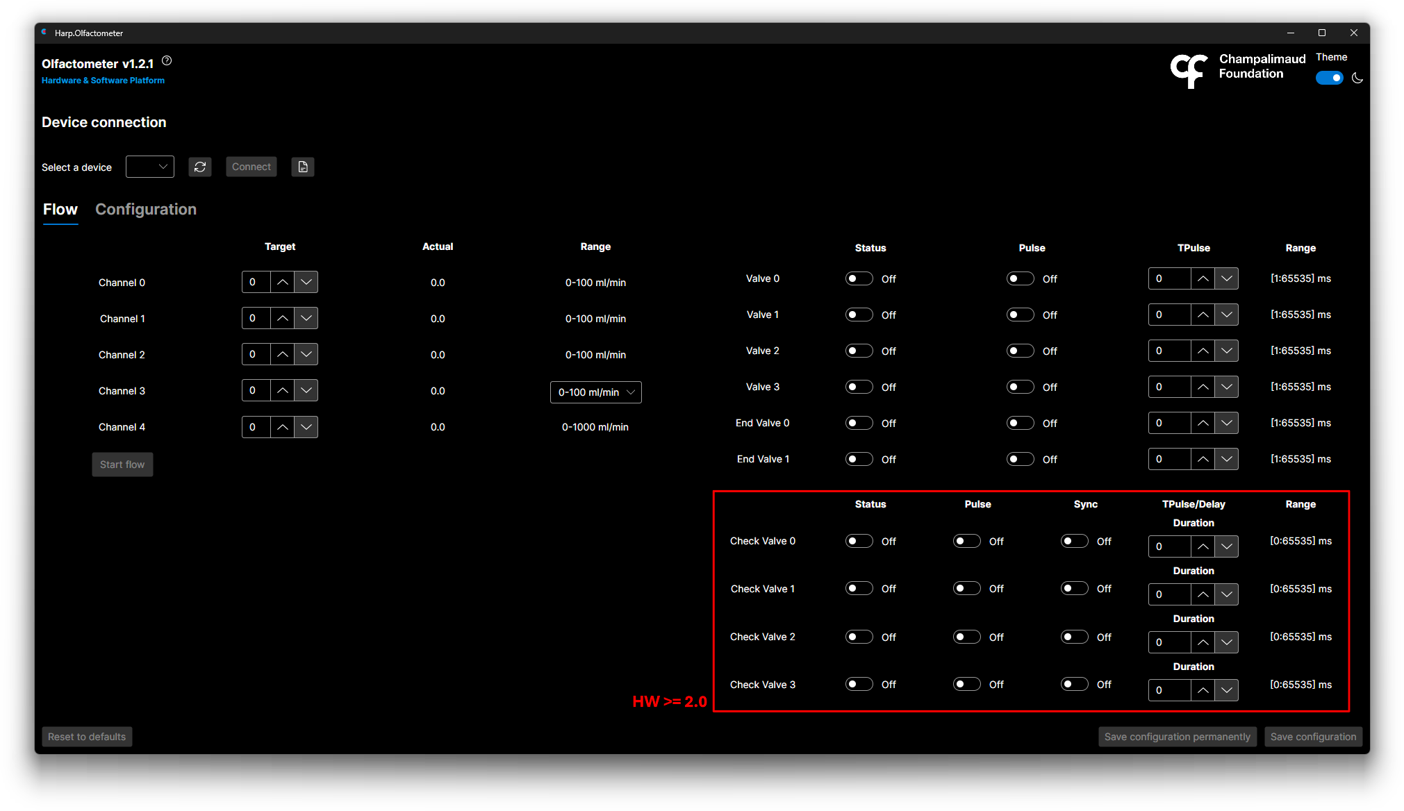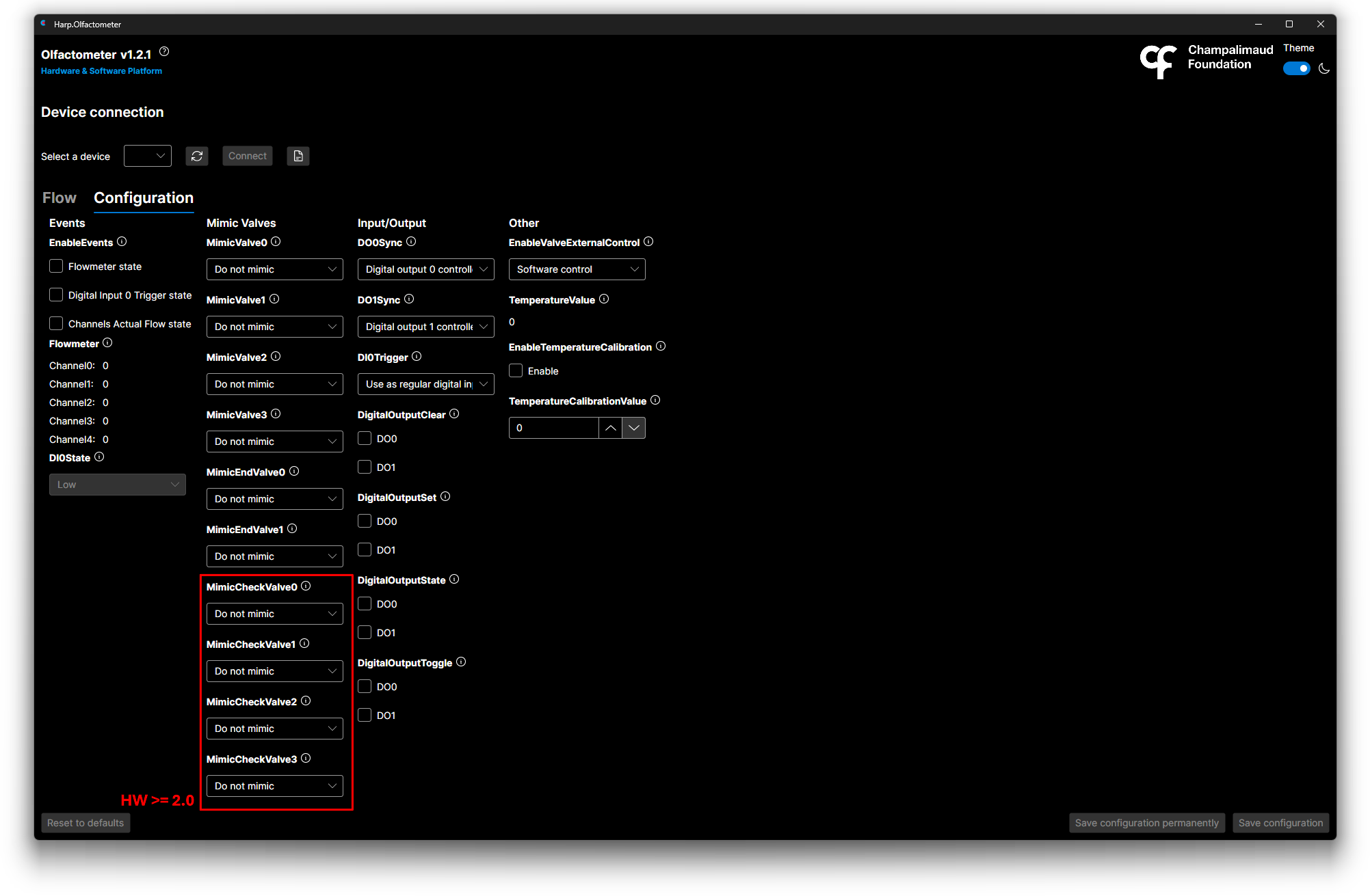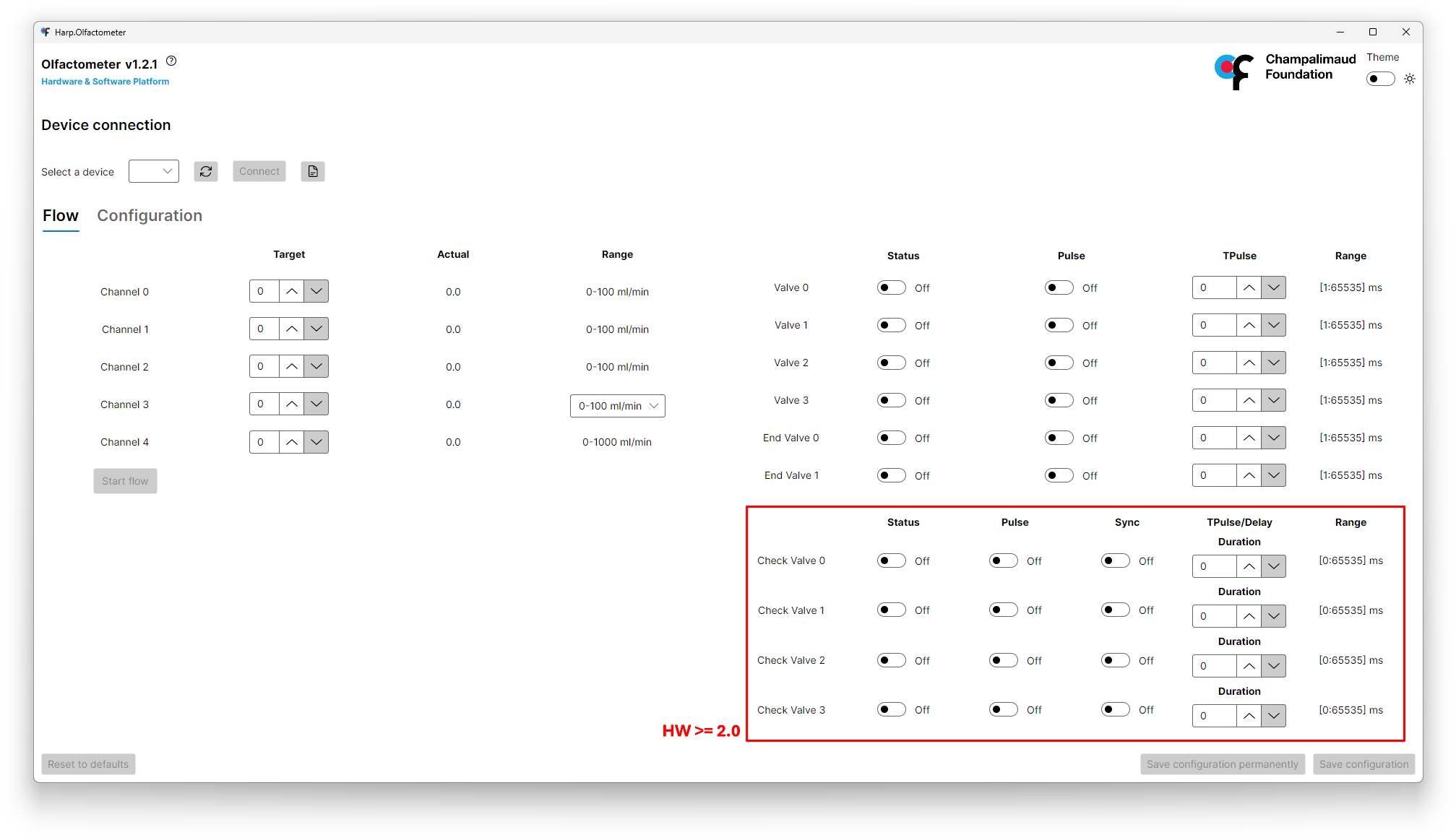 When connecting a device with Hardware >= 2.0, the GUI will show the additional section marked in the image above. More details on usage regarding the options available in this section can be found under the Check Valves registers.